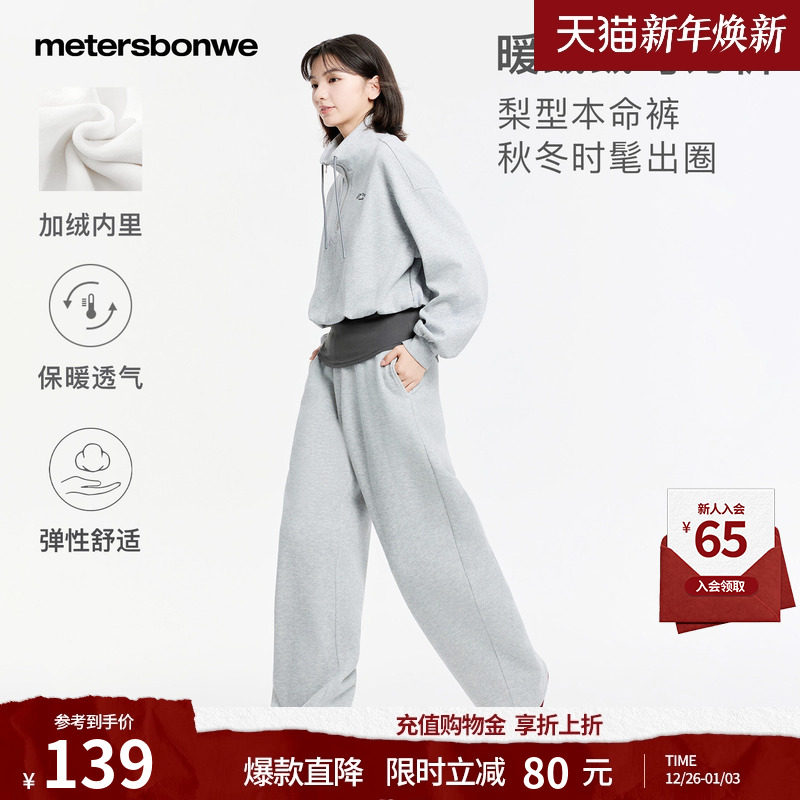 美特斯邦威休闲裤女秋冬休闲加厚垂感直筒卫裤阔腿显瘦休闲运动香