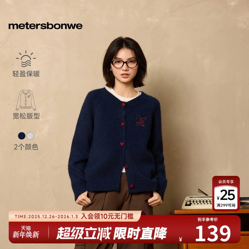 美特斯邦威毛衣女2025秋季新款潮流休闲撞色扣长袖刺绣开衫宽松女