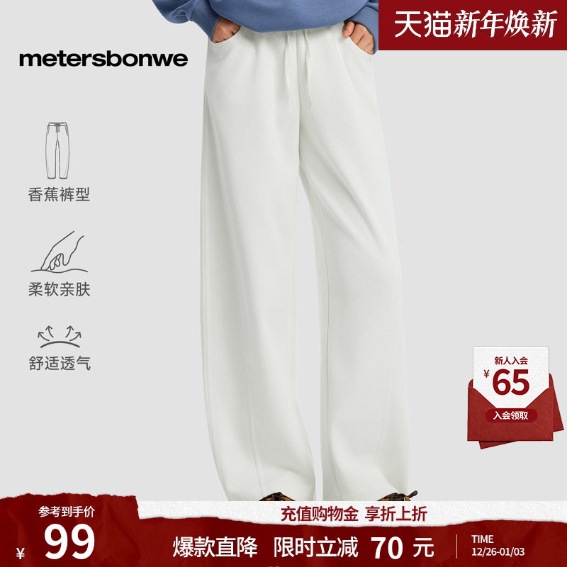 美特斯邦威休闲裤女2025秋冬休闲加厚垂感直筒卫裤阔腿显瘦香蕉裤