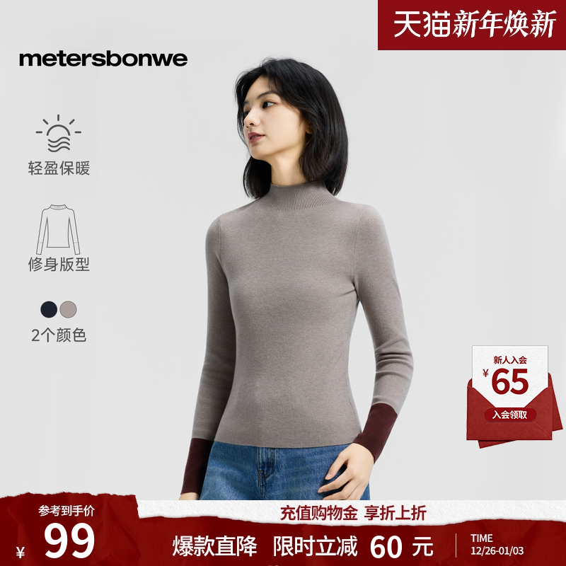 美特斯邦威毛衣女全羊毛半高领毛衫秋冬纯色绵羊毛毛衣内搭上衣女