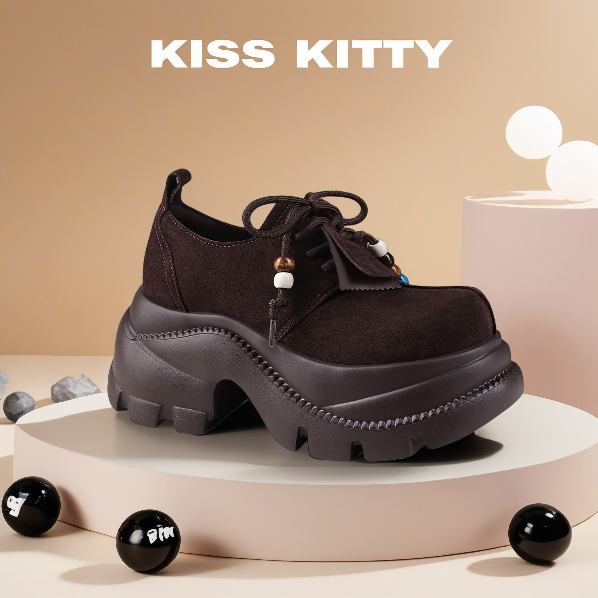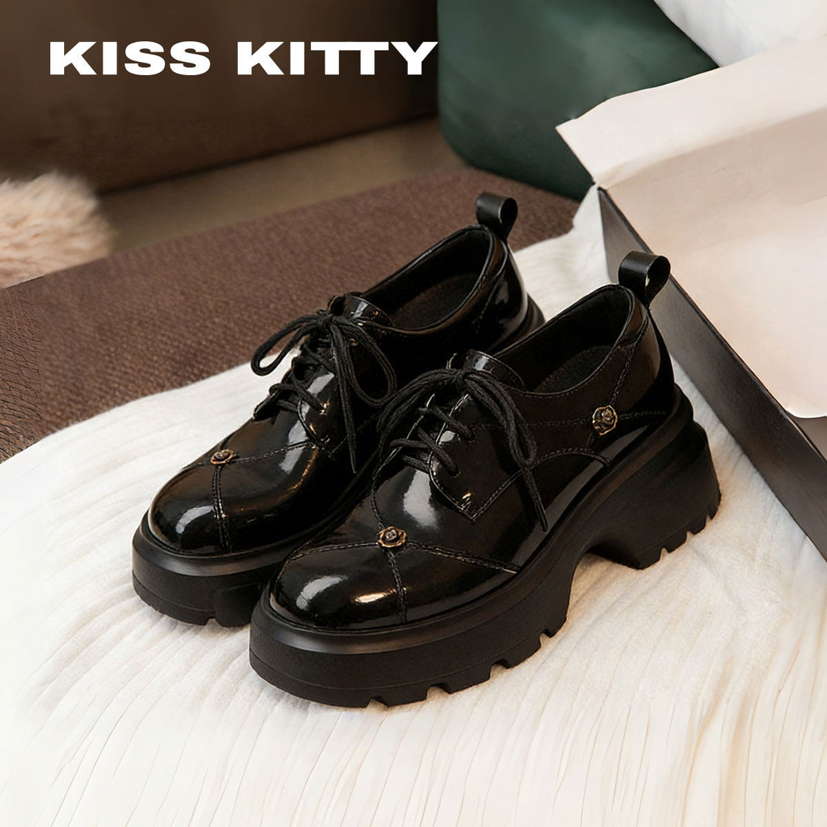 KISSKITTY黑糖奶纹 厚底增高休闲鞋26年春新款牛津小皮鞋百搭单鞋