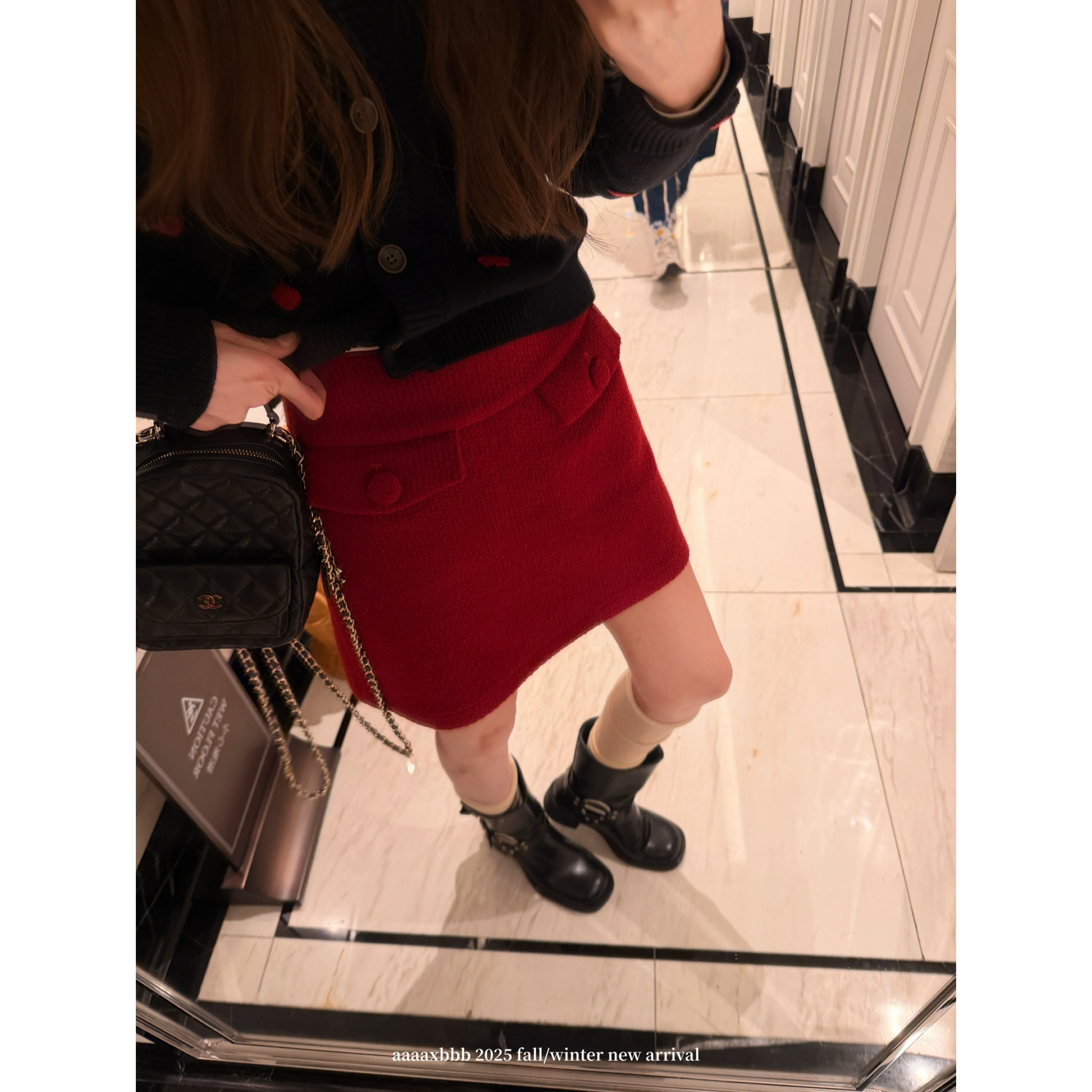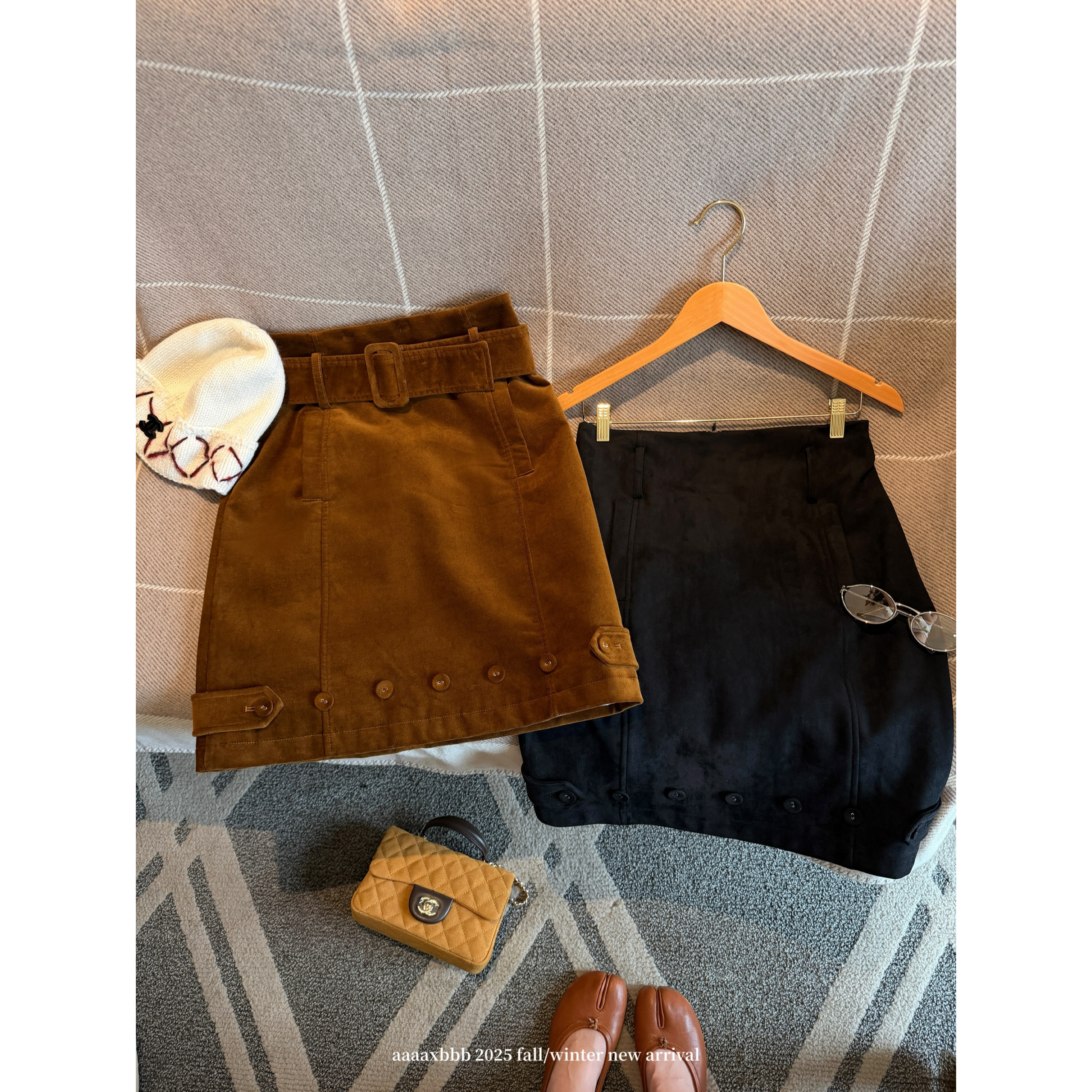 aaaaxbbb 波尔多诗篇 两色氛围感A字半身裙口袋松紧短裙秋冬新款