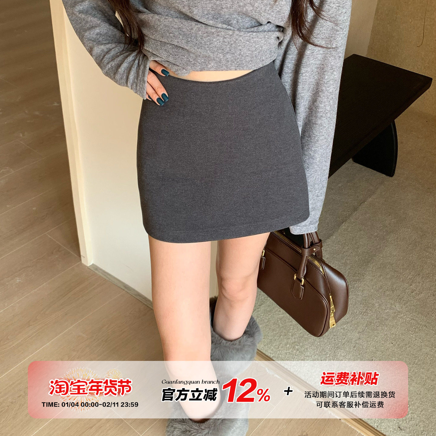 灰色毛呢半身裙女2025秋冬季外穿打底小个子a字包臀短裙修身显瘦