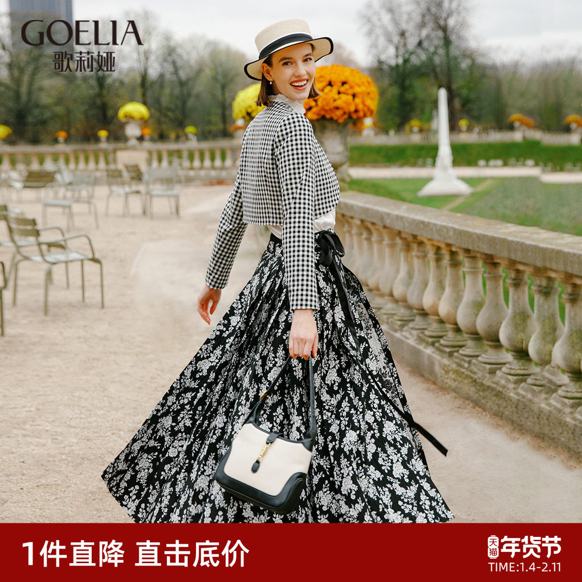 LYNEE【迷迭花园】肌理感百褶半身裙秋冬新款复古优雅大裙摆伞裙