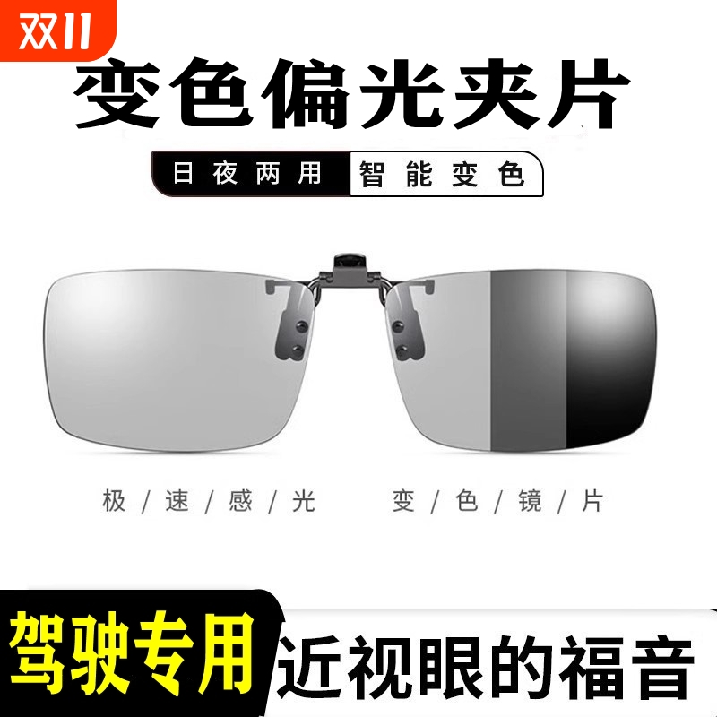 开车近视偏光太阳镜夹片式变色眼镜日夜两用墨镜夹片镜片夜间驾驶