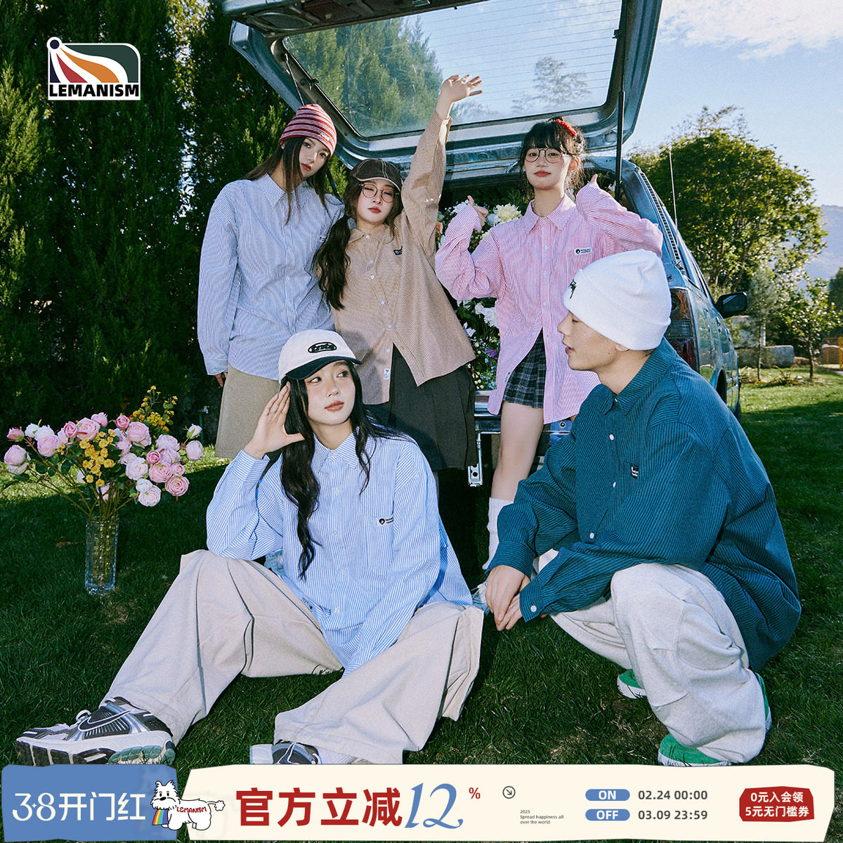 查尔斯桃心小狗印花条纹长袖衬衫男女春秋季新款宽松休闲衬衣外套