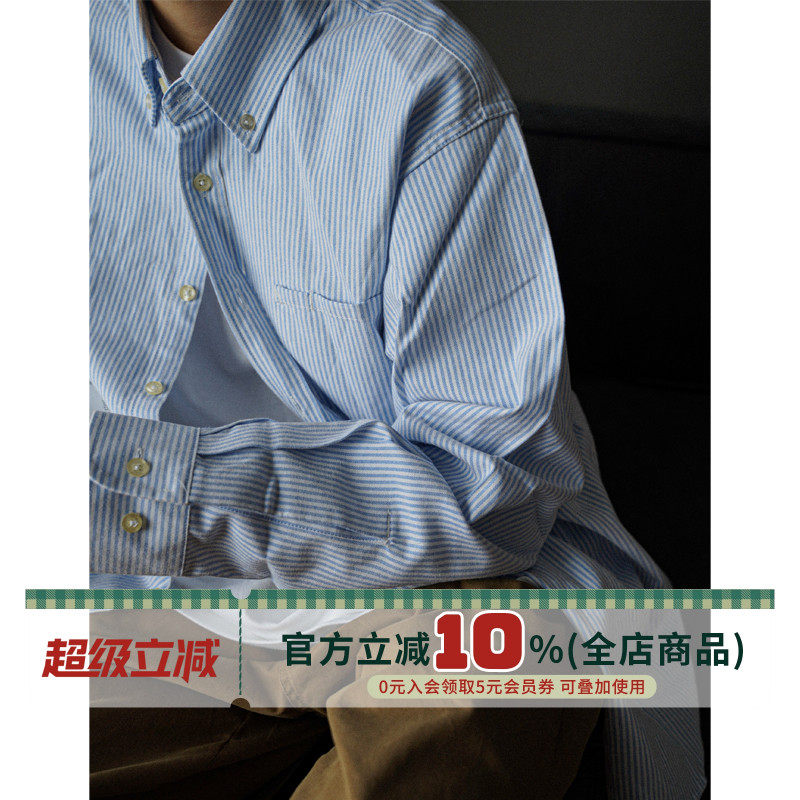 YOKE STUDIO美式休闲Cleanfit条纹衬衫男女宽松长袖衬衣外套情侣