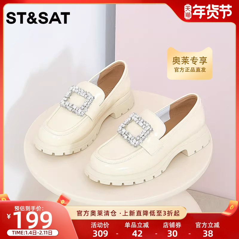 星期六英伦风乐福鞋春秋新款女鞋方扣水钻百搭皮鞋SS31111251