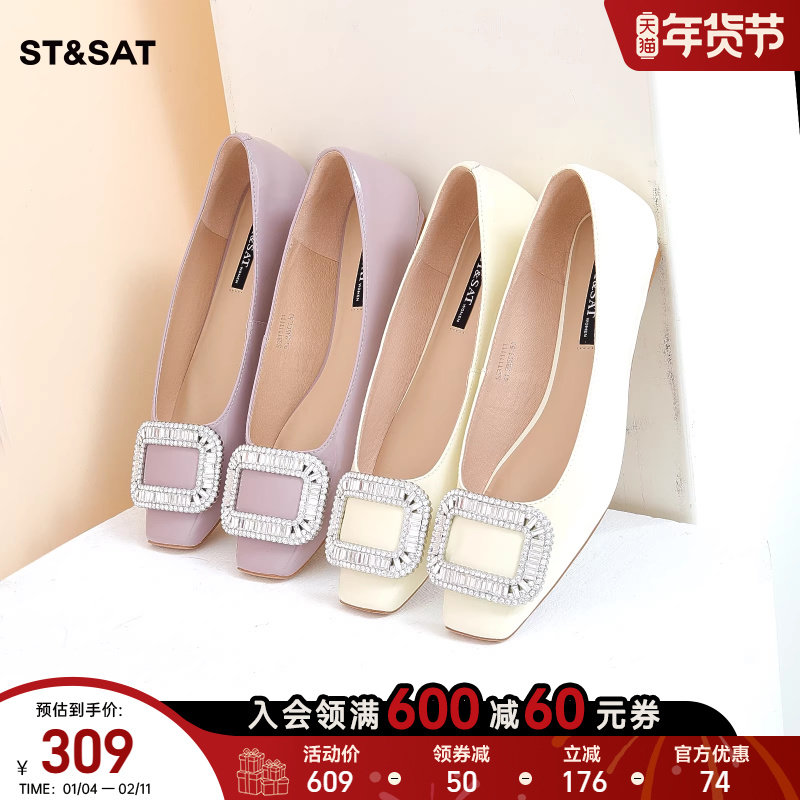 星期六通勤平底鞋春秋新款女鞋方扣水钻百搭小单鞋SS31111111