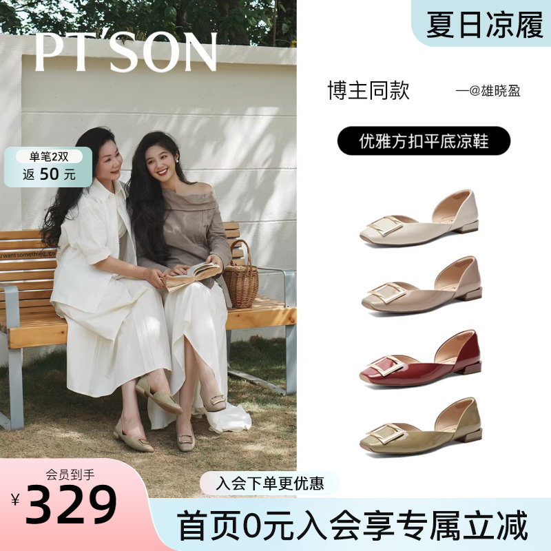康莉真皮方扣单鞋女春夏新款气质通勤百搭浅口平底鞋不累脚小单鞋
