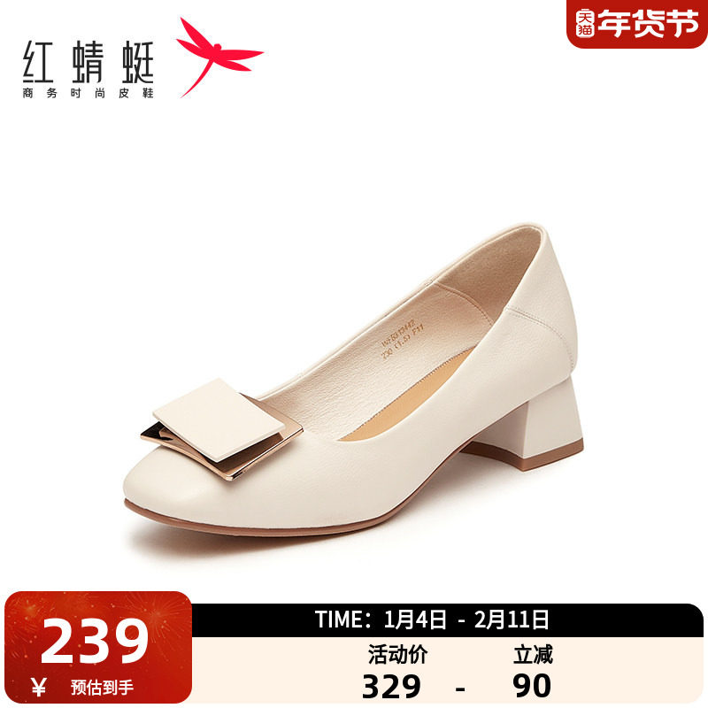 红蜻蜓浅口单鞋女夏季新款时尚气质粗跟女鞋方扣百搭一脚蹬高跟鞋