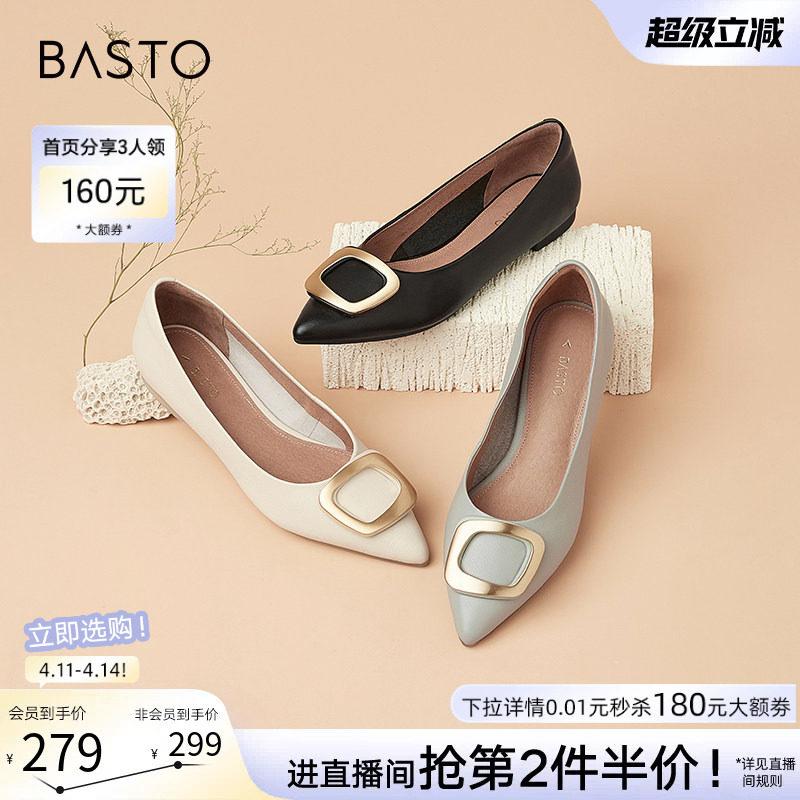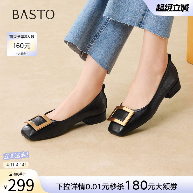百思图春商场同款百搭通勤方扣尖头低跟晚晚风女单鞋RGR36AQ5