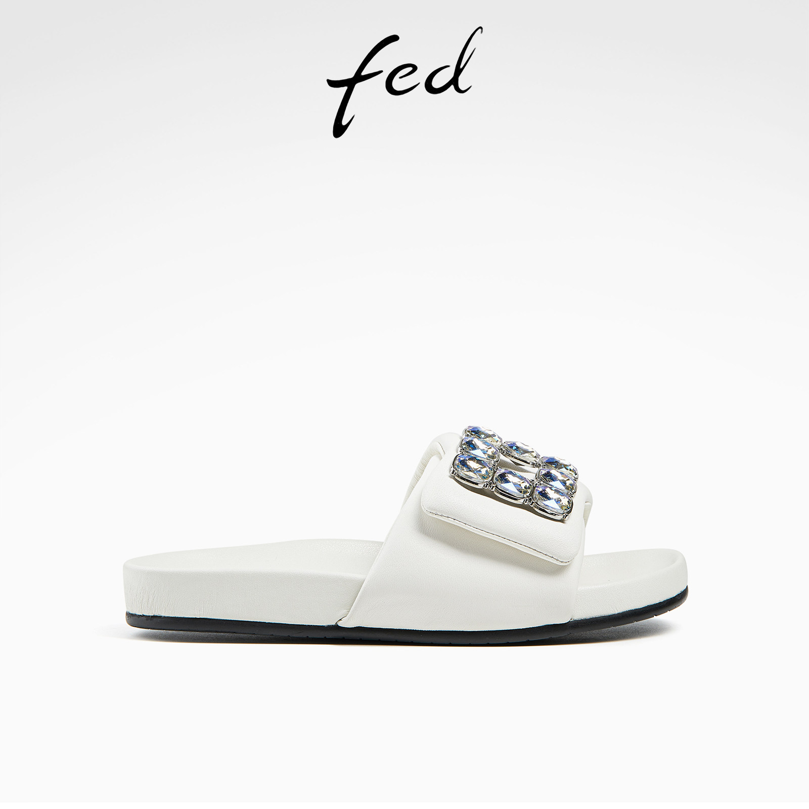 fed软底一字拖夏季新款女鞋方扣彩钻轻便凉拖鞋女款D0415-YAB798