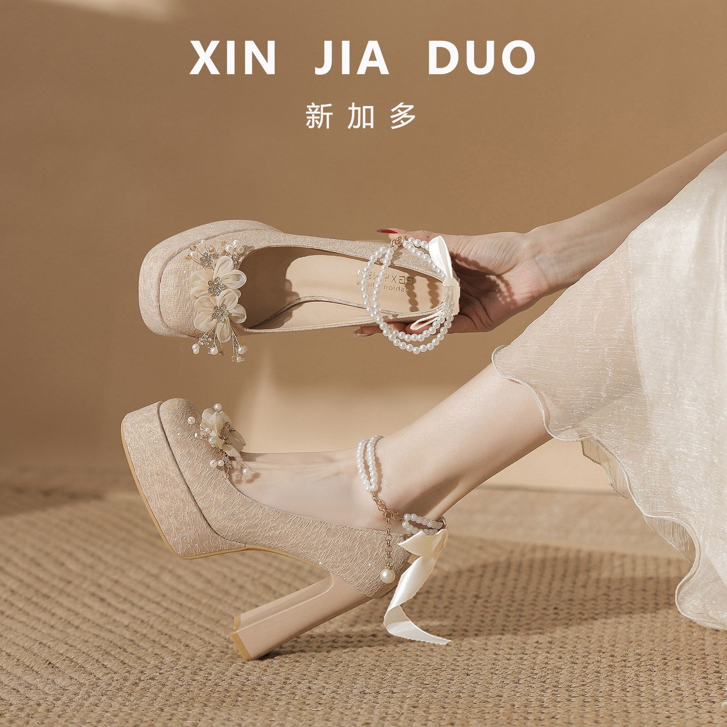香槟色婚鞋气质高跟鞋订婚轻奢高级感玛丽珍小个子女鞋方扣单鞋女