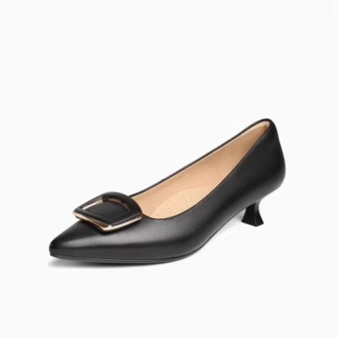法式细跟单鞋女2025新款真皮尖头高跟女鞋方扣浅口气质时尚鞋子女