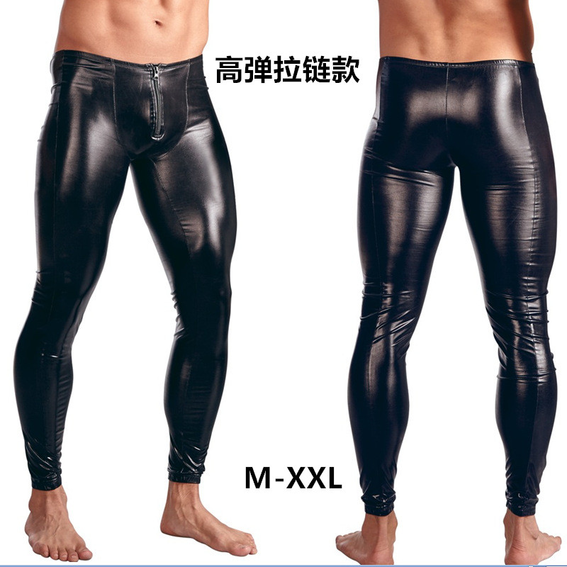 男士弹力亮光漆皮拉链皮裤大码薄款紧身低腰表演长裤提臀打底休闲