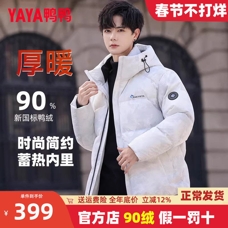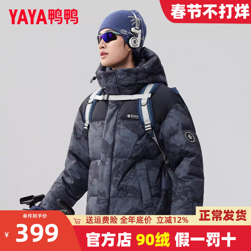 鸭鸭羽绒服男短款2025冬季新款连帽加厚雪山迷彩青少年保暖外套Y