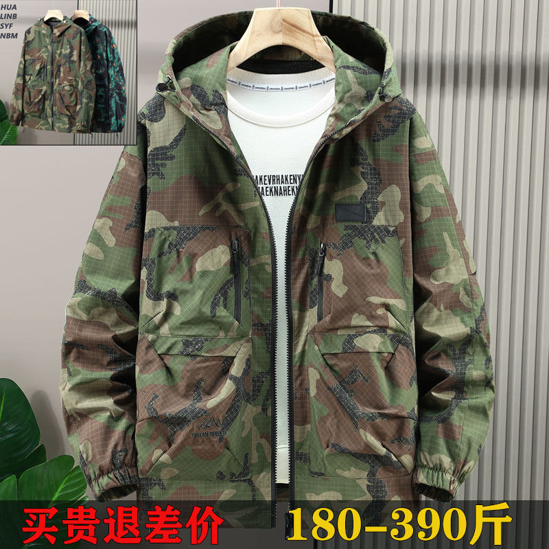 390斤夹克外套男2025新款迷彩服高中生青少年加肥加大胖子薄风衣