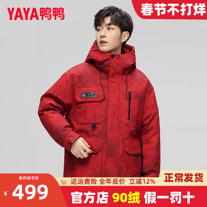 鸭鸭水墨迷彩羽绒服男冬季加厚2025新款工装短款连帽青少年外套Y