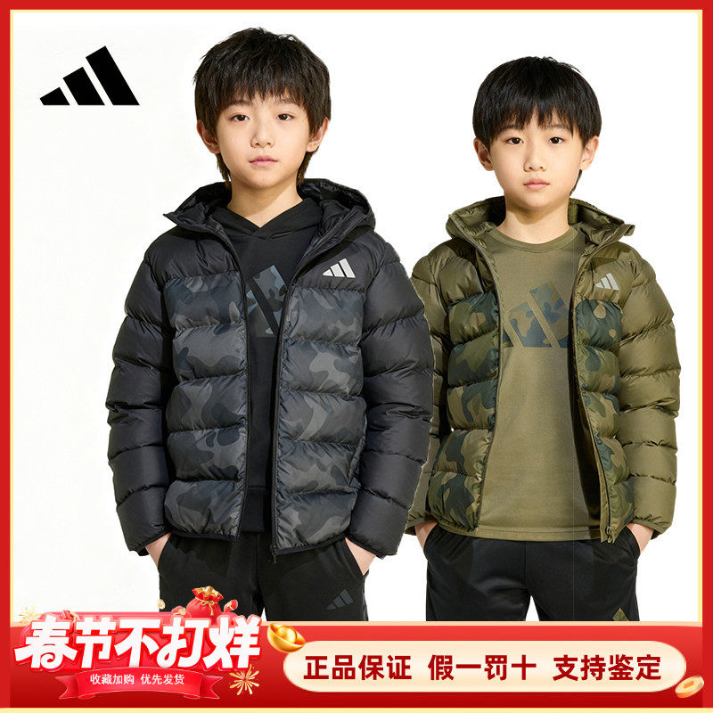 Adidas阿迪达斯大童棉服迷彩外套冬季男女青少年加厚防风保暖棉袄