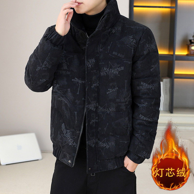 迷彩潮牌立领灯芯绒短款棉衣男加厚款新款青少年潮流棉服棉袄外套