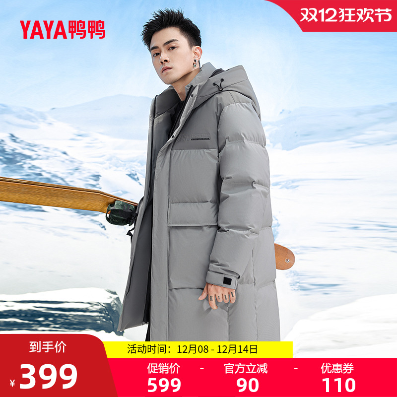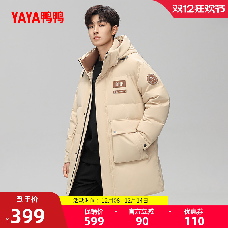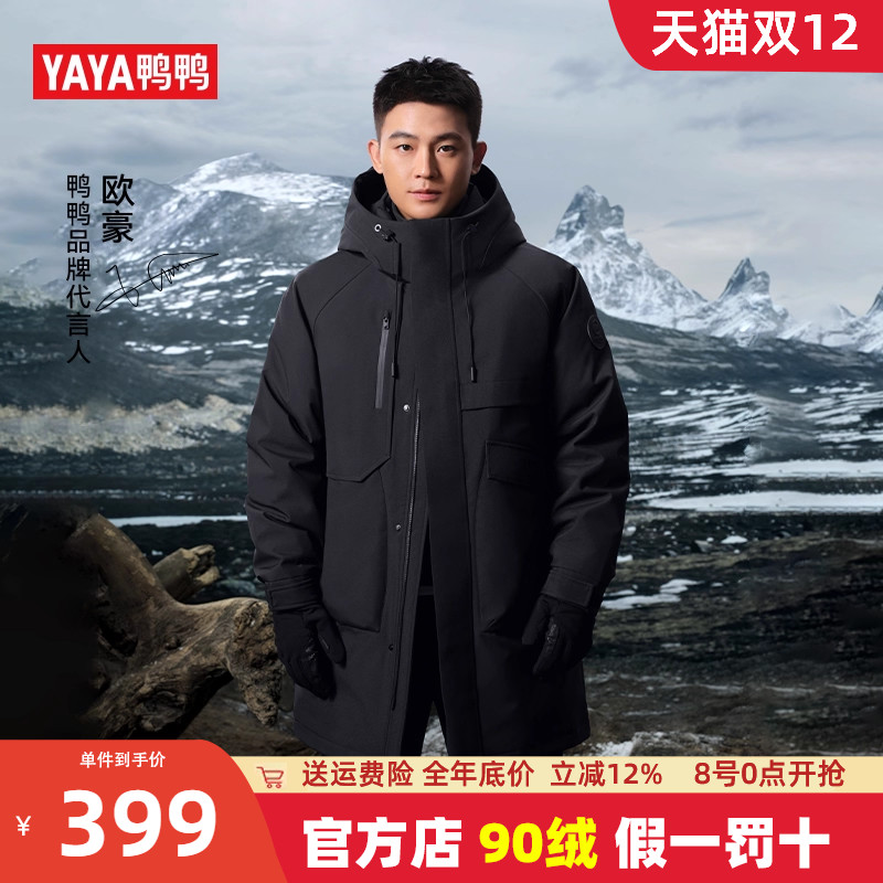 鸭鸭羽绒服男士2025冬季新品中长款时尚百搭休闲连帽暖鸭绒外套A