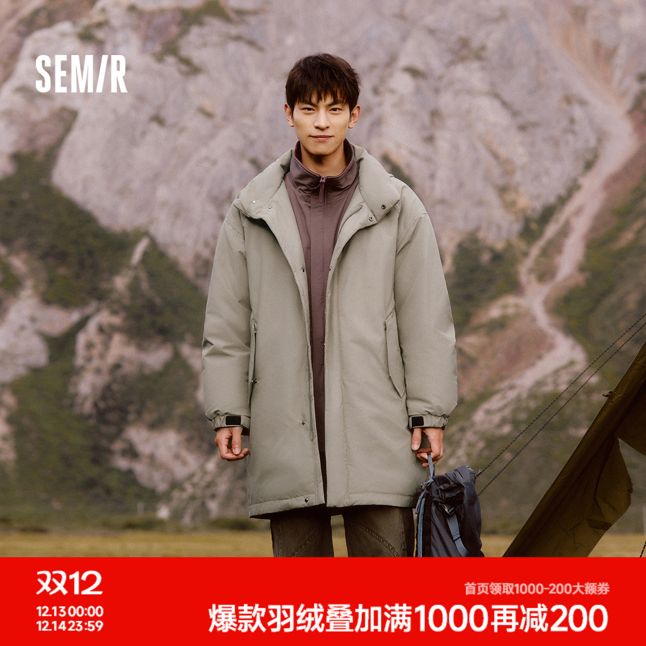 防护外套|森马羽绒服男中长款2024冬季三防连帽外套纯色oversize