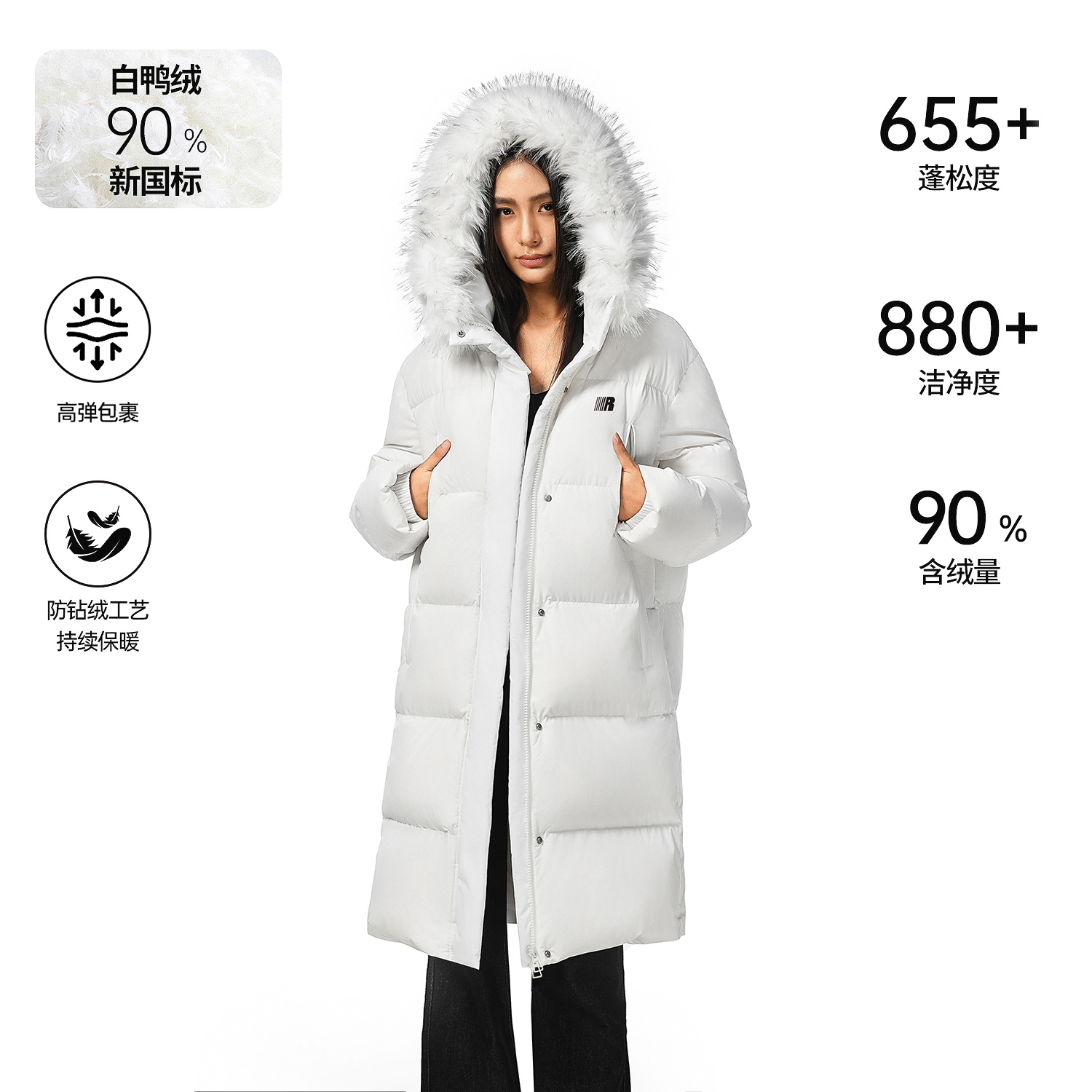 【明星同款】ER基础中长款过膝羽绒服男2025冬季保暖90白鸭绒外套