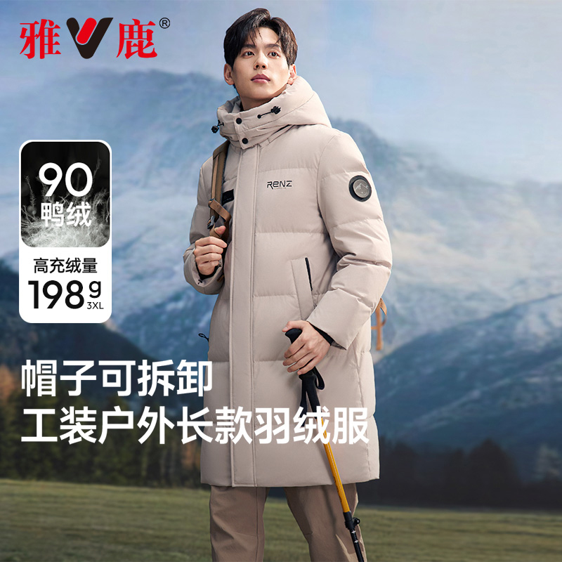 雅鹿冬季极寒中长款可拆帽羽绒服男士2025新款蓄热内里防寒外套男