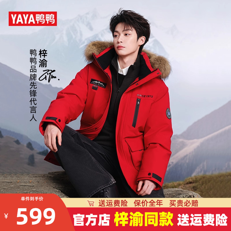 梓渝同款鸭鸭极寒加厚大毛领羽绒服男中长款加厚冬季2025新款外套