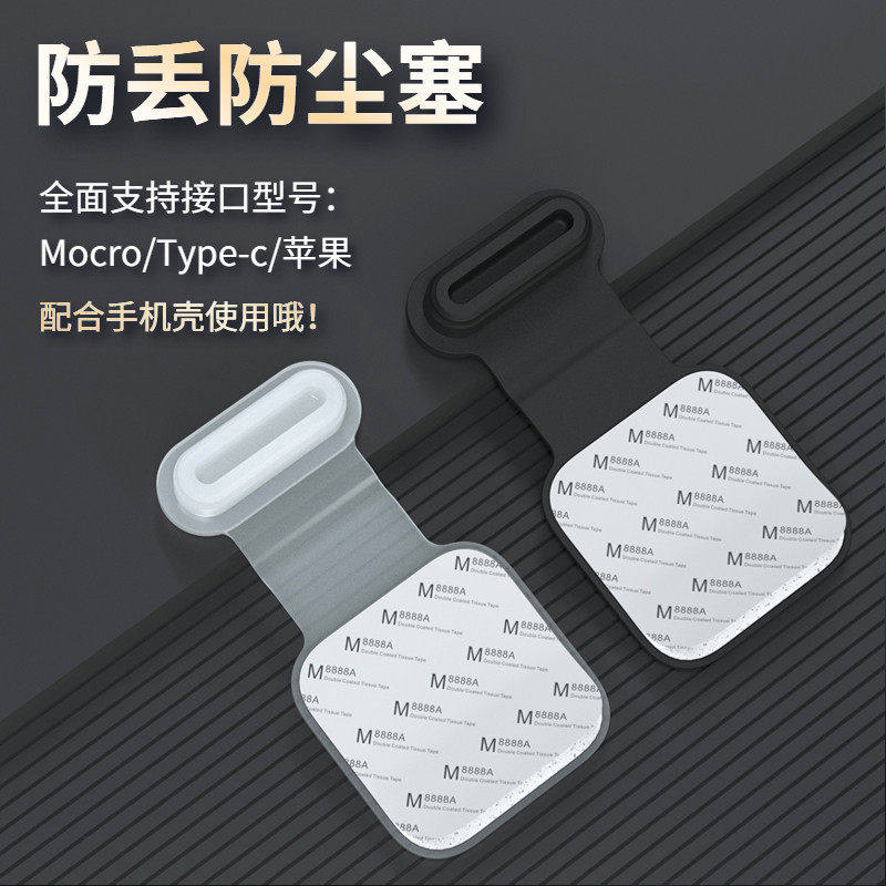 手机防尘塞硅胶粘贴式防丢失硅胶柔软适用华为mate60手机充电口防尘塞typec防尘小米荣耀堵头防尘贴14
