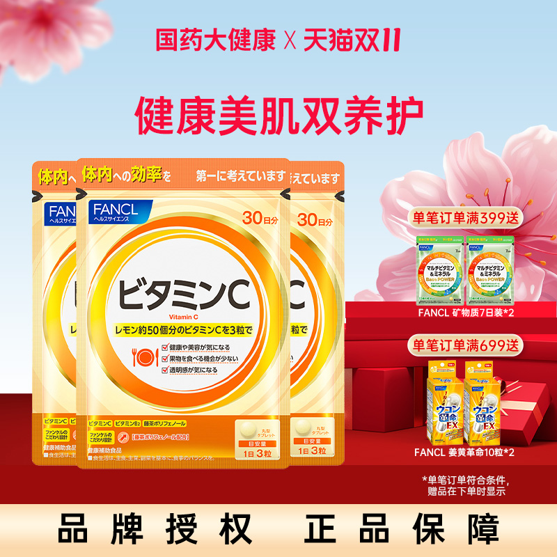 日本FANCL/芳珂天然维生素C精华片剂 VC片补充维生素90粒/袋*3