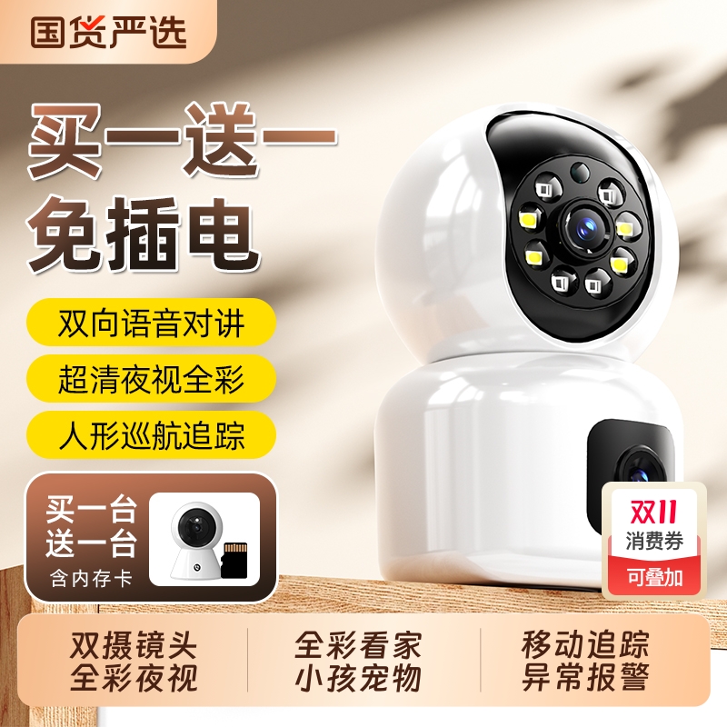 远程家用监控摄像头双画面室内360度无死角高清室内小孩宠物手机