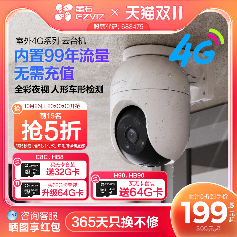 萤石云C8C智能无线全景监控摄像头400万室外户外农村夜视高清360度手机远程wifi500万探头H9C海康威视莹石