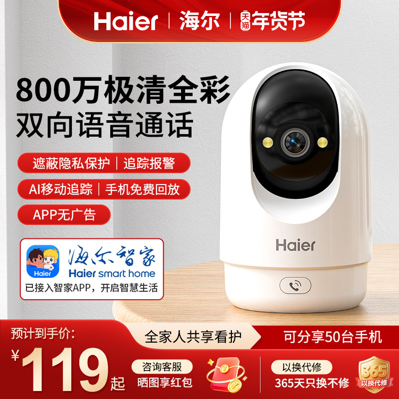 海尔摄像头家用无线新款监控器手机远程360度全景摄影室内无死角