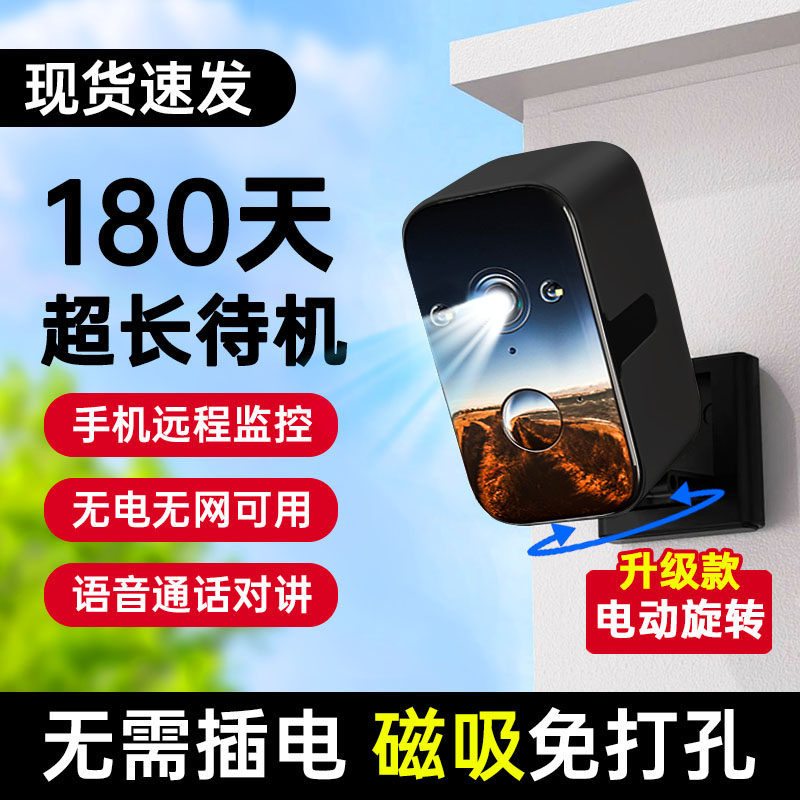 可旋转免插电无线摄像头4G终身免流智能门口家用充电监控手机远程