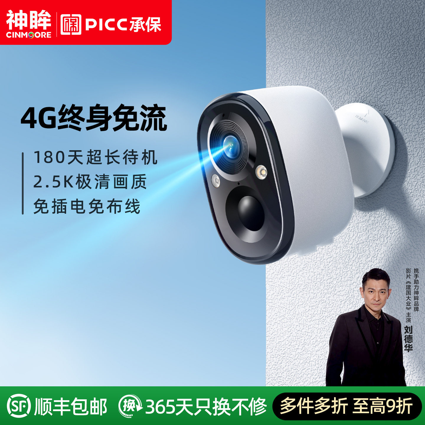 神眸BC22+4G终身免流门口监控器楼道摄像头家用免插电高清智能