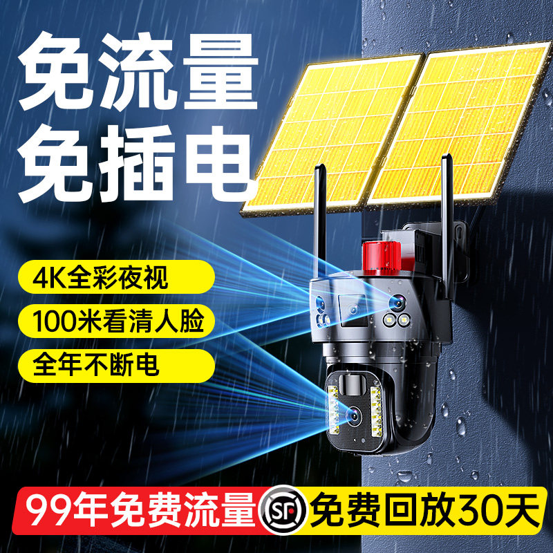 太阳能监控摄像头免插电360度无死角室外无需网络家用远程手机器