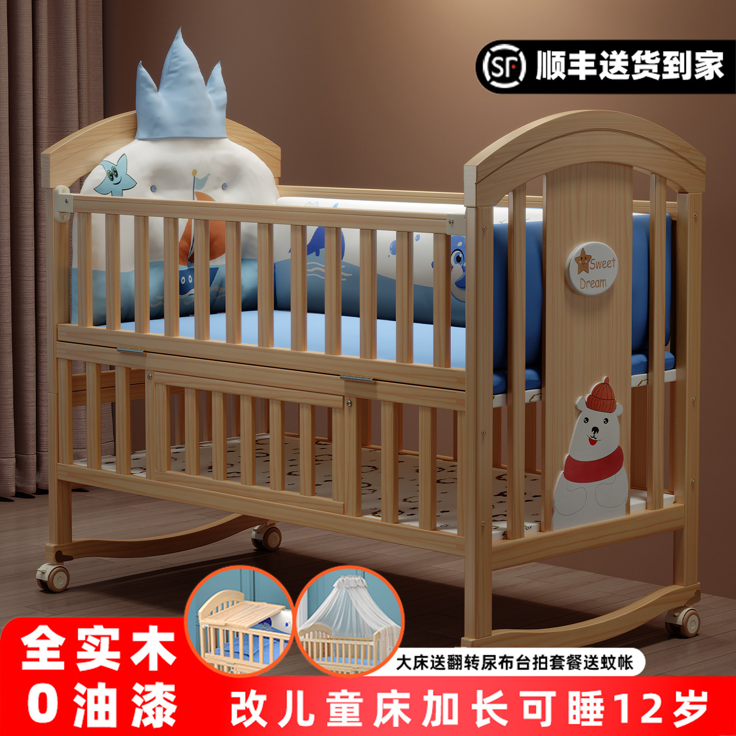 婴儿床实木无漆环大保拼-bb宝宝床新生儿摇篮床儿童接床01AVT2岁