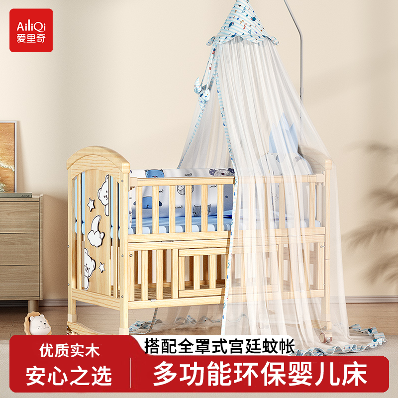 爱里奇婴儿床实木无漆多功能新生儿宝宝bb摇篮可移动儿童拼接大床