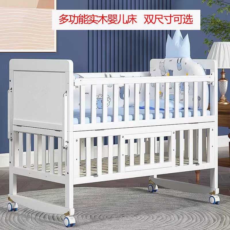 承接工程婴儿床实木无漆宝宝床多功能bb新生儿童拼接大床摇床摇篮