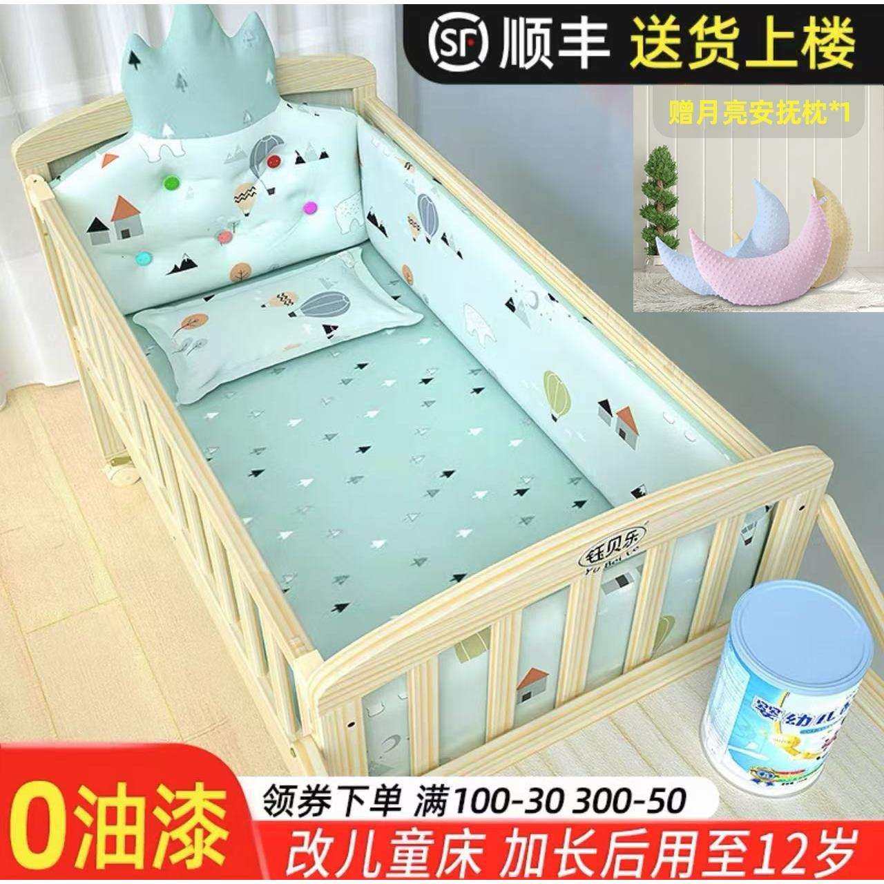 钰贝乐婴儿床实木无漆环宝宝床儿童拼无品牌/床接保变床可书桌婴