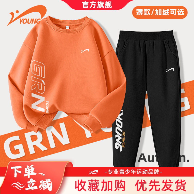贵人鸟童装男童套装潮帅气时髦2026新款儿童加绒卫衣男孩运动冬装