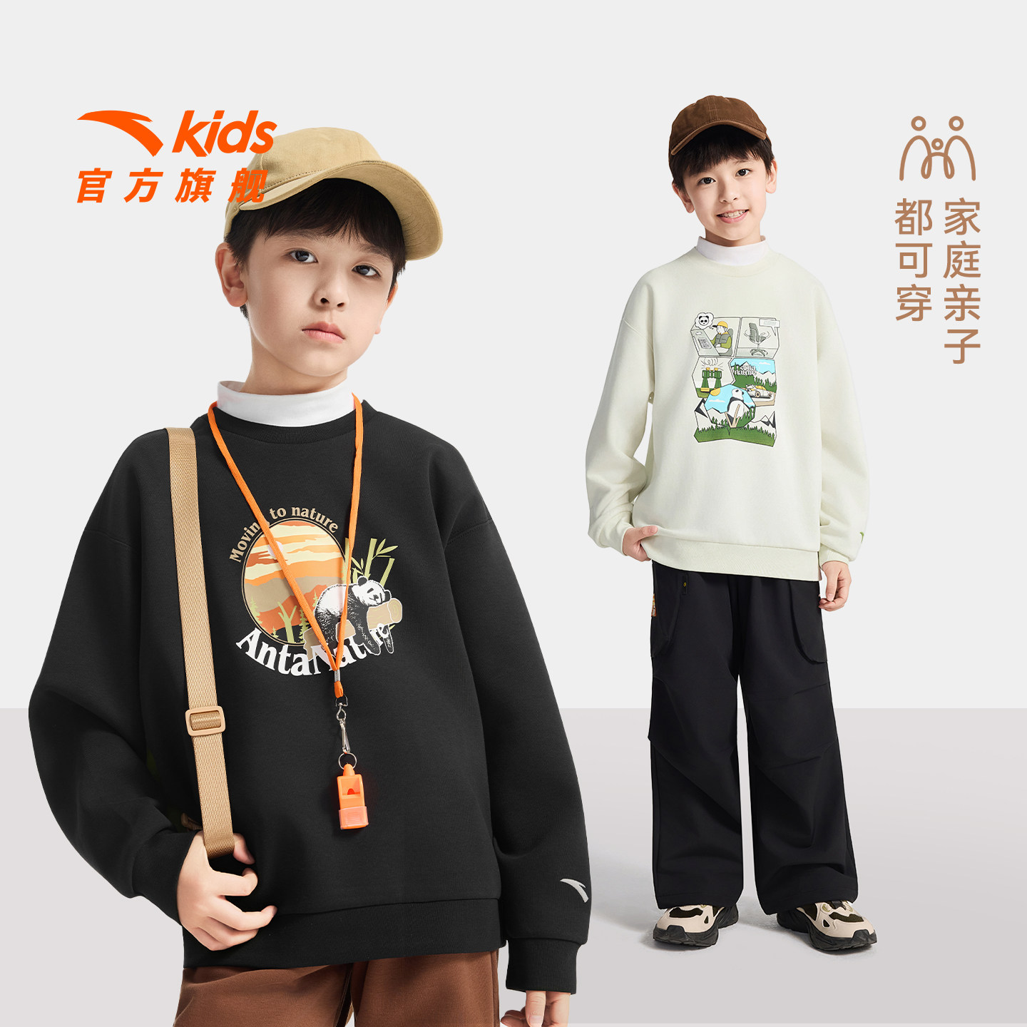 安踏儿童加绒卫衣男童卫衣2025秋冬少年顽家潮酷长袖上衣保暖上衣