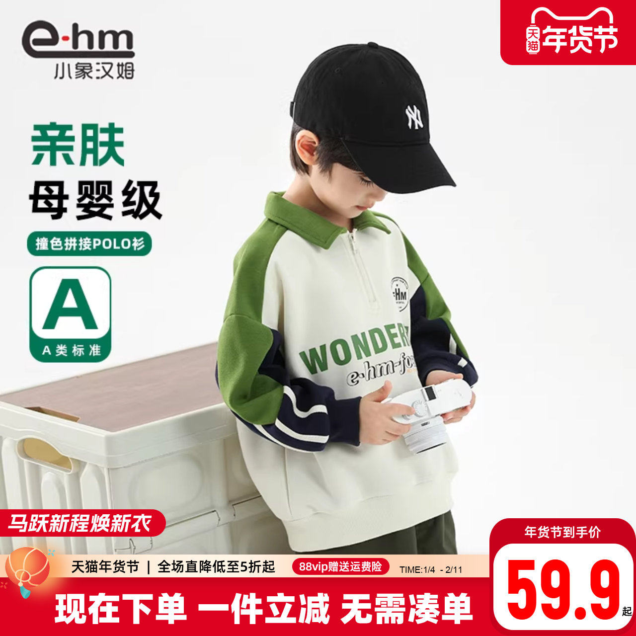 小象汉姆童装A类男童POLO衫儿童卫衣翻领2026春装新款男孩上衣潮