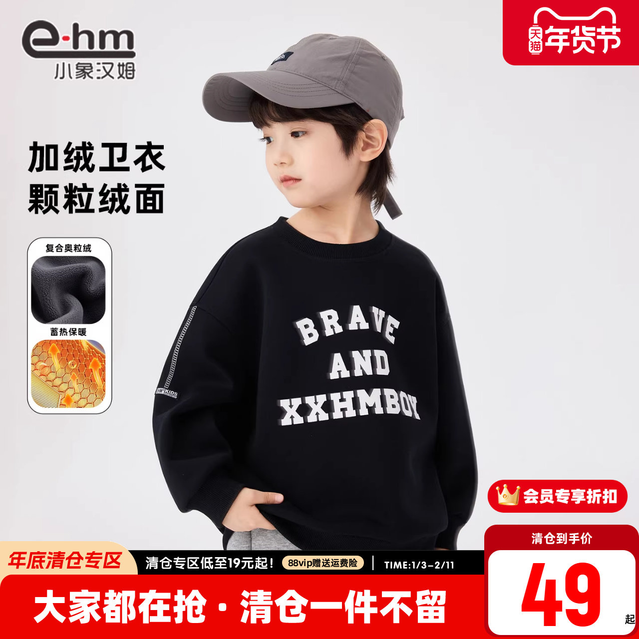 小象汉姆男童男童卫衣儿童圆领打底衫冬季加绒2026冬装新款洋气潮