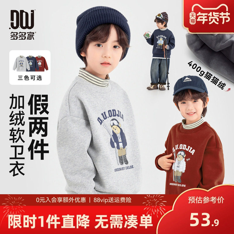 多多家男童加绒卫衣2025秋冬新款儿童中大童洋气假两件加厚上衣潮