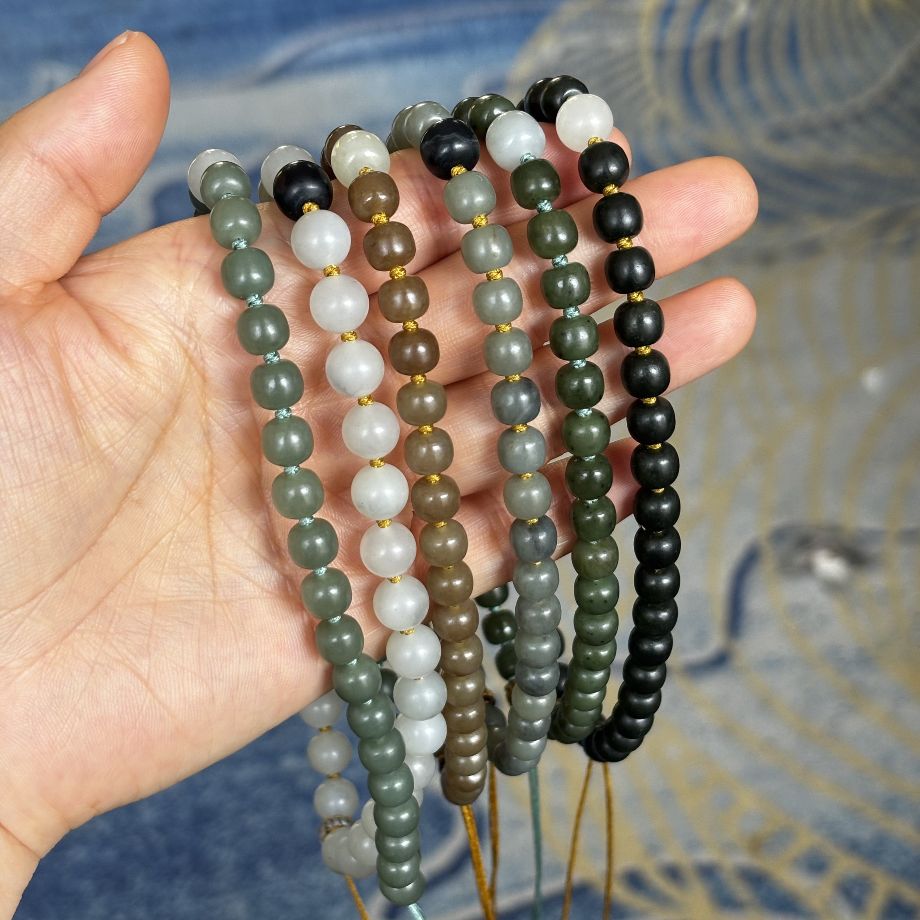 猜重量~送手镯新疆和田沙枣青籽料手镯碧玉籽料8MM珠子吊坠挂件