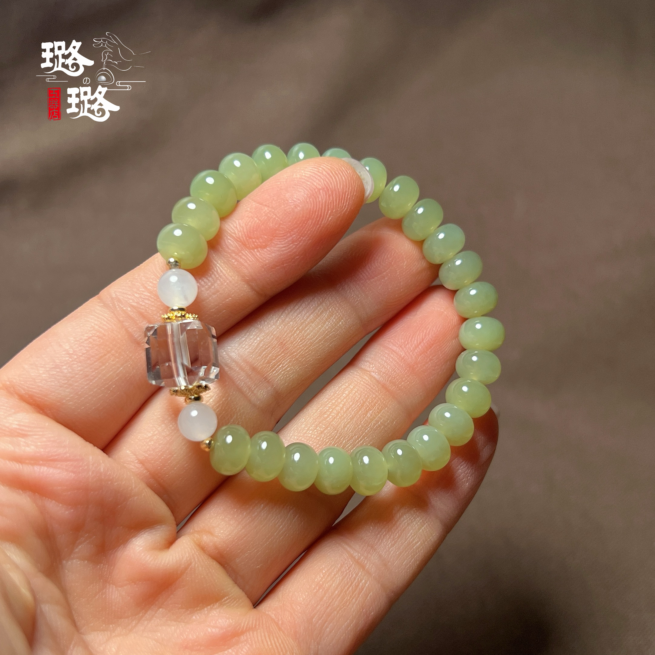 新款正品新疆和田玉籽料手链男女款青玉盘龙塔青玉石手串生日礼物