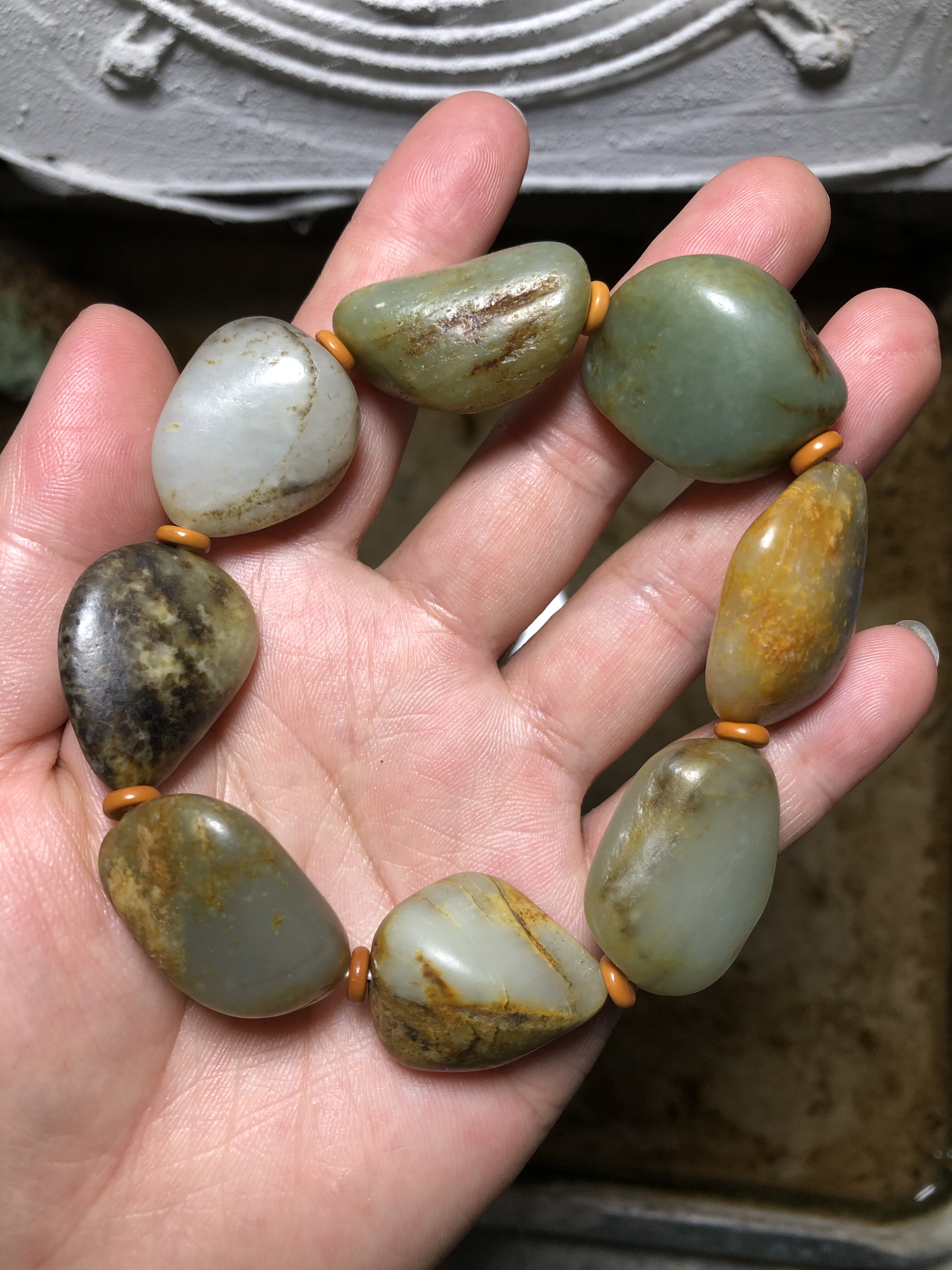 天然新疆和田玉籽料散珠原石籽料带黄皮手链手串项链吊坠DIY配珠